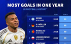 自然年国家队+顶级联赛俱乐部进球数历史前10:梅西91球第1